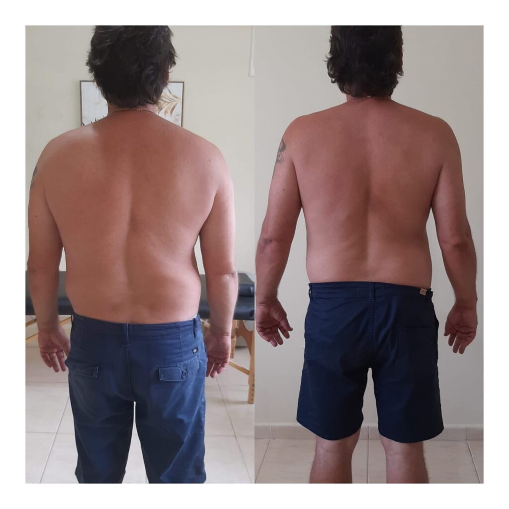 Paciente com escoliose e dores intensas. Após 2 meses de tratamento, conquistou alívio da dor e melhora na postura, prevenindo complicações futuras.